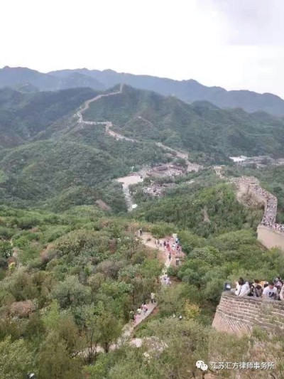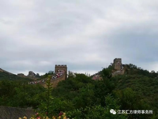 正如小学课本里写的那样“从北京出发,不过几十公里就来到长城脚下。这一段长城修筑在八达岭上,高大坚固,是用巨大的条石和城砖筑成的。城墙顶上铺着方砖,十分平整,像很宽的马路,五六匹马可以并行。城墙外沿有两米多高的成排的垛子,垛子上有方形的瞭望口和射口,供瞭望和射击用。城墙顶上,每隔三百多米就有一座方形的城台,是屯兵的堡垒。打仗的时候,城台之间可以互相呼应,延绵不绝、气势恢宏!”长城是我们民族众志成城,团结一心的代表作,是我们民族毅力与智慧结合的代表作。江苏汇方律师事务所北京行第一站就来到了长城,就是要学习先人凝聚在长城中的团结、智慧、毅力,这正是我们所向前发展的必备品质。